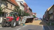 Kuriózní nehoda: Nejrušnější ulici v Třebíči zaplavily tuny obilí, podívejte se
