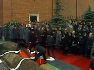 Když pohřbívali Leonida Iljiče Brežněva, událost se vysílala v přímém přenosu po celé východní Evropa. Při spouštění rakve do hrobu se ozvala dunivá rána. Přímý přenos sledovalo mnoho lidí a mnoho z nich si záhadné rány všimlo. Všimli si jí i propagandisté a v dalším zpravodajství se už choulostivý moment neocitnul. Komunističtí cenzoři tak dosáhli přesně opačného efektu. Kolem události se tak několik teorií a anekdot. Zlomyslný lid poté tvrdil, že Brežněv šel do hrobu flopem či že Brežněvův pohřeb se na tři písmena řekne BUM. Ohledně toho, co se skutečně stalo, panovaly dohady. Podle jedné teorie byl obézní Brežněv ve vyztužené rakvi pro dva vojáky příliš těžký a rakev jim jednoduše upadla. Podle druhé varianty rakev nevydržela, upadlo jí dno a Brežněv skončil pod ní. V roce 1990 dal Brežněvův hrobník, který spouštěl rakev u jeho nohou, rozhovor příloze listu Komsomolskaja pravda. Tvrdil, že se žádná nehoda nepřihodila a slyšitelná rána byla salva, označující okamžik, kdy má kapela začít hrát sovětskou státní hymnu. Grigorij Kovalenko uvedl, že Brežněva spustil rychle a citlivě jako rychlovýtahem. Vzhledem k tomu, že stejný Kovalenko spouštěl do hrobu i Andropova a Černěnka, je tato jeho výpověď věrohodná. Při sebemenším maléru by mu tuto úlohu už nesvěřili a pravděpodobně by skončil někde na Sibiři. Později dostupný záznam skutečně ránu zachytil. Že měl Kovalenko problém rakev udržet je ze záznamu patrné. Pohyb popruhů je rychlý, ale plynulý. Při pádu rakve by byl náraz na dno hrobu patrný. Rána se ozvala ve chvíli, kdy byla rakev ještě v pohybu. Při destrukci rakve by náhlé ulehčení hrobníkům bylo patrné.