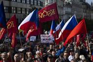 Několik stovek lidí se v Praze sešlo na protestu komunistů proti vládě