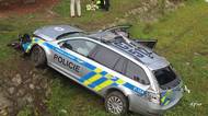 VIDEO: V Čejeticích na Strakonicku havaroval policejní vůz. Sjel do potoka