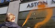 Aktivisté postříkali showroom Aston Martin oranžovou barvou a zastavili dopravu