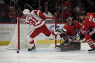Hokejový útočník Dominik Kubalík překonal v NHL Petra Mrázka, navíc přihrál na gól, ale s Detroitem podlehl v Chicagu 3:4 v prodloužení.