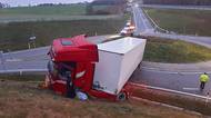 Nehoda kamionu zkomplikovala dopravu. Zraněný řidič nadýchal 2,5 promile