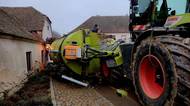 V Dešné na Dačicku se v úterý 15. listopadu stala kuriózní nehoda, při které se cisterna za traktorem převážejícím kejdu převrátila na dům.