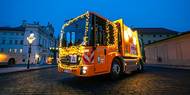 Do pražských ulic opět vyjel vánočně ozdobený popelářský vůz