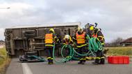 V Horním Žukově se převrátil náklaďák, řidič se zranil