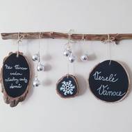 Potěšte návštěvy přátel nebo rodinných příslušníků hned u vchodu milým vánočním přáním na dřevěné kulatině. Kulatinu lze sehnat v hobbymarketech nebo na internetu.