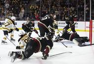 Karel Vejmelka se v NHL zasloužil 43 zákroky o výhru Arizony 4:3 nad Bostonem. Jednou jej překonal David Pastrňák a přihrávku si připsal David Krejčí.