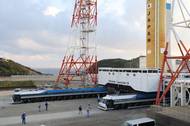 Japonská vozidla připomínající housenku slouží k přepravě raket. Mají neuvěřitelných 56 kol a měří více než 25 metrů!