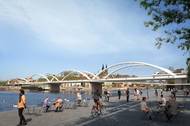 Nový most budou tvořit ocelové oblouky osmiúhelníkového profilu, které se směrem vzhůru zplošťují, výplň budou tvořit nerezové závěsy.