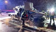 Na Radotínském mostě se srazila dodávka s kamionem, jeden člověk zemřel