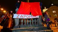 Na Zemanův mítink v Náchodě přišli prezidentovi příznivci i odpůrci. Na náměstí vlály červené trenýrky