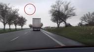 Led odlétávající z kamionu ohrožoval i řidiče v protisměru. Podívejte ve videu
