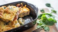 Co se zbylým pečivem? Upečte vláčnou slanou žemlovku se slaninou a špenátem