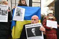 Lidé s portréty mrtvých ukrajinských sportovců demonstrovali před sídlem ČOV