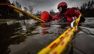 OBRAZEM: Jak vypadá záchrana člověka, pod kterým se propadne led? Hasiči cvičili modelové situace