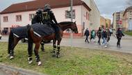 Do Budějc vyrazili fanoušci fotbalové Bohemky. Na pořádek dohlížejí desítky policistů, vrtulník i hlídka na koních