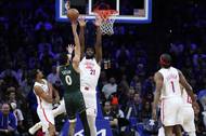 Jayson Tatum zajistil v NBA tříbodovým košem sekundu před koncem výhru basketbalistů Bostonu 110:107 v hale Philadelphie. Celtics uhájili první příčku v tabulce před Milwaukee a odskočili na rozdíl dvou výher lídrovi Západní konference Denveru, jelikož Nuggets prohráli 94:112 s Memphisem.
