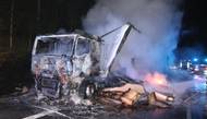 VIDEO: Požár kamionu naloženého kartonem uzavřel dálnici D5, škoda je přes milion korun