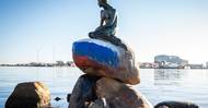 Sochu mořské víly v Kodani někdo poničil ruskou vlajkou
