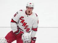Martin Nečas se podílel v NHL gólem a dvěma přihrávkami na výhře hokejistů Caroliny 6:1 v Arizoně a stal se třetí hvězdou zápasu.