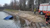 Mladý řidič předjížděl v nevhodný moment, s autem vletěl do rybníku