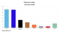 Sněmovní volby by nyní vyhrála koalice Spolu s 31 procenty hlasů. Druhé hnutí ANO by mělo 30,5 procenta. Vyplývá to z v neděli zveřejněného volebního modelu agentury Kantar CZ pro Českou televizi. Do Poslanecké sněmovny by se mohla vrátit Česká strana sociálně demokratická (ČSSD). Pokud by však strany ve volbách kandidovaly samostatně, a ne v koalicích, vyhrálo by ANO před občanskými demokraty. Třetí by v takovém případě byli Piráti.