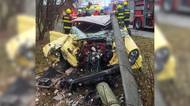 Autoveterán na Pardubicku narazil do sloupu. Zranili se čtyři lidé, pro dítě letěl vrtulník
