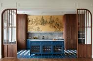 Rekonstruovaný byt má kuchyň v modré a zlaté. Je to riskantní kombinace, přiznává architektka