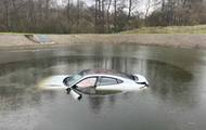 Elektromobil skončil po nehodě na D8 v retenční nádrži