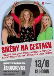 Zcela nová zábavná talk show ženské trojice hereček a zpěvaček Sandry POGODOVÉ, Jitky ASTEROVÉ a Lindy FINKOVÉ - "SIRÉNY NA CESTÁCH". Jejich neotřelý smysl pro humor a vzájemná chuť si ze sebe utahovat vás rozhodně pobaví.