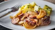 Nejlepší krkovice? Šťavnaté plátky pečené jen tak s klobáskou, cibulí a kouskem špeku