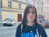Je potřeba více sankcí zaměřených na Rusy, kteří proti nám bojují, říká Anastasija Sihnajevská před pražským domem rodiny ruského zbrojaře.