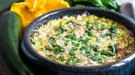 V druhém díle slavné kuchařky Umění francouzské kuchyně od Julie Childové najdete nenápadný recept na gratinovaný rýžový nákyp s cuketou a sýrem. Výtečné bezmasé jídlo se hodí zvlášť v době, kdy zahrádky překypují hojností a cuket je všude dost. Podávejte jako lehké vegetariánské jídlo nebo jako přílohu například k pečenému kuřeti.