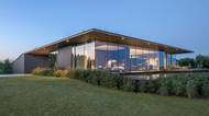Dům skrytý ve svahu kde výhled nemá hranic. Kryje se zelenou střechou a je nenápadný pro okolí