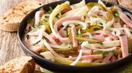 Wurstsalat – salámový salát se sýrem je oblíbený v Německu i ve Švýcarsku