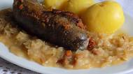 Jitrnice s kysaným zelím a bramborem: Jitrnice je třeba včas vyndat z lednice, obalit v mouce a zelí správně ochutit
