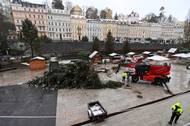 Vítr zlomil vánoční strom v K. Varech u Thermalu, nikdo nebyl zraněn