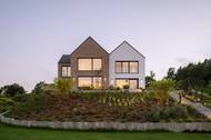 Z přírody vyrůstá štítový dům, který elegantně splývá s krajinou a nabízí nejen ohromující výhled na přírodu díky svému topografickému umístění, ale také vysoké místnosti v prvním patře. Tento architektonický skvost, inspirovaný příkrým svahem a mající za cíl spojit exteriér s interiérem, ztělesňuje harmonii s přírodou a vytváří klidný domov s úžasnými výhledy.