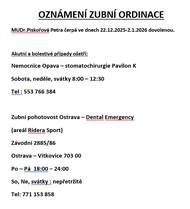 Oznámení zubní ordinace Mokré Lazce