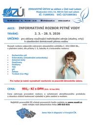 Od 2. března do 28. května 2026 probíhá na Zdravotním ústavu v Ústí nad Labem akce zaměřená na informativní rozbor pitné vody z individuálních zdrojů. Rozsah rozboru zahrnuje klíčové ukazatele, jako jsou Escherichia coli, dusičnany a tvrdost vody. Vzorkovnice je nutné vyzvednout na pracovišti ústavu