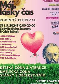 Rodinný festival Máj, lásky čas začíná v Sadech Bedřicha Smetany v 10 hodin dopoledne, až do večera bude park plný hudby a umění, nebude chybět občerstvení a atrakce pro děti. Více: https://fb.me/e/2528ITcnO