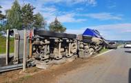 Kamion na dálnici D1 na Vysočině prorazil středová svodidla a převrátil se