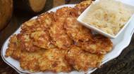Zelňáky z kysaného zelí se sýrem: Nastrouhaný uzený sýr dodá placičkám chuť a česnek vůni, tučná smetana vláčnost
