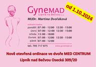 MUDr. Martina Dvořáková oznamuje, že otvírá od 1.10.2024 novou ordinaci v areálu MED CENTRA. Je nutné se nově registrovat.