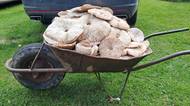 Lidé vozí houby domů na kolečku. Mapa ukazuje, kde je teď největší úroda