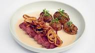 Uzený hovězí jazyk s křenovou omáčkou a pečenými bramborami podle Martina Peciny