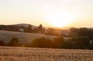 Rodinný dům s výhledem na Karlštejn a Berounku. Je postavený ze slámy a uprostřed má zelený krb