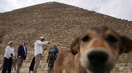 Na vrcholu pyramidy v Gíze skotačil pes. Bizarní pohled baví internet