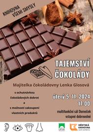 Městská knihovna zve v úterý 5. listopadu od 17:00 hodin do multifunkčního sálu Domeček na besedu s Lenkou Glosovou - Tajemství čokolády. Součástí besedy bude ochutnávka čokoládových dobrot. Vstupné dobrovolné.